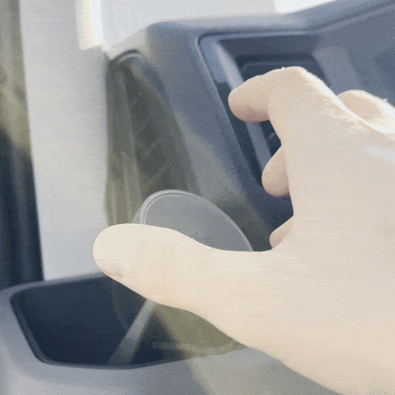 Vehicle-specific. No glue, no vacuum, no screws.